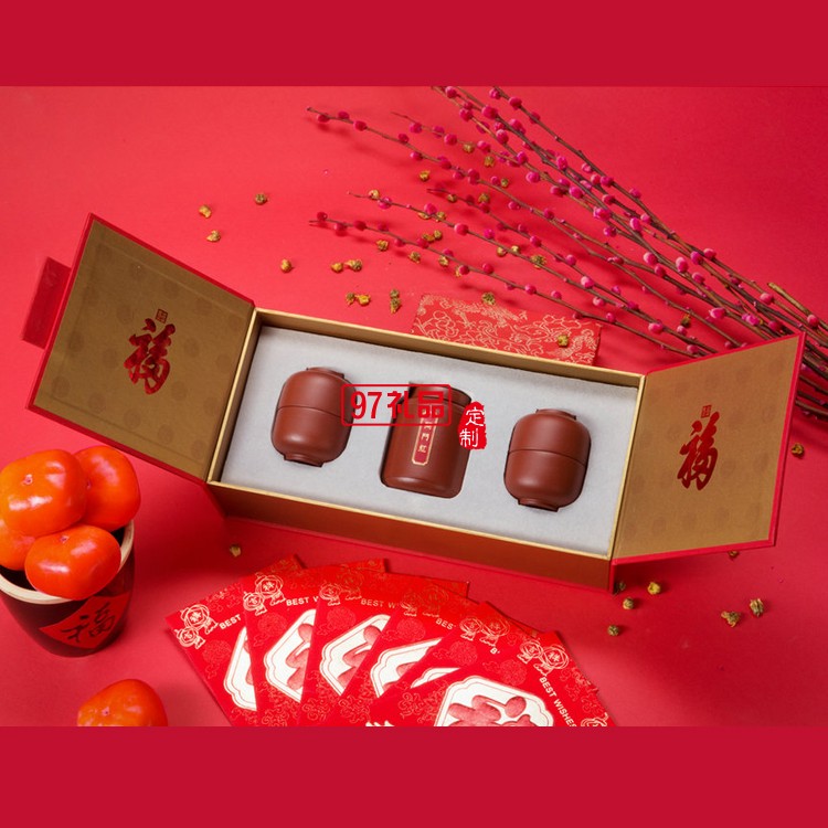 “開門紅”系列茶禮,取宜興紫砂紅泥,經(jīng)名匠精心手作,技藝精湛,巧奪天工。
