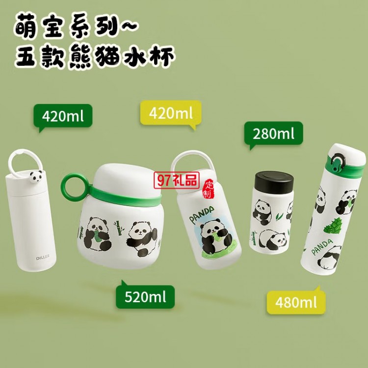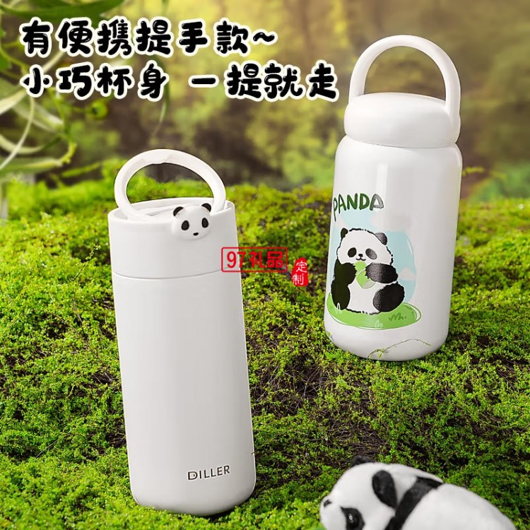 迪樂貝爾可愛熊貓系列周邊紀(jì)念伴手禮水杯316不銹鋼便攜提手保溫杯