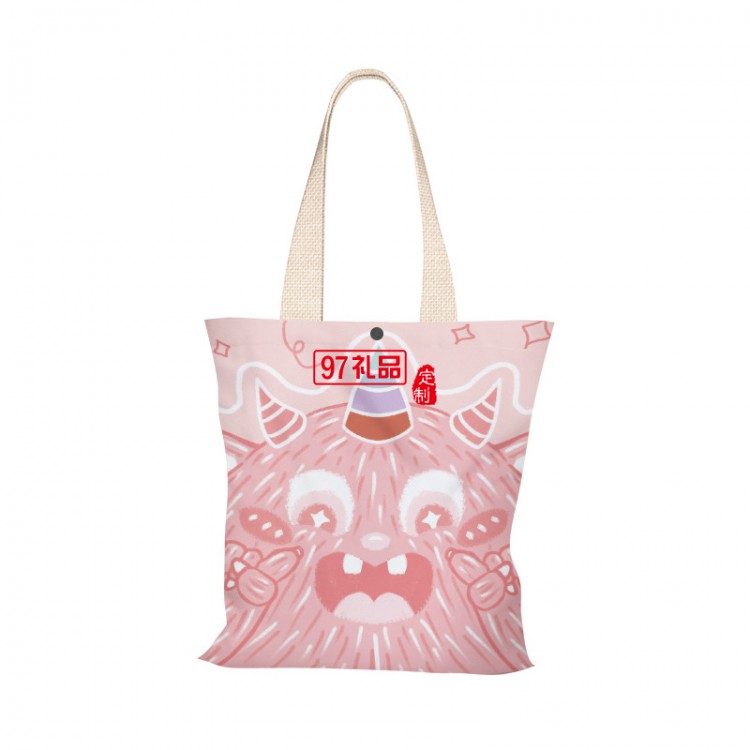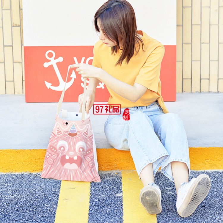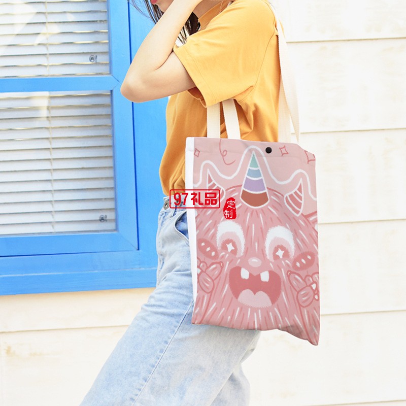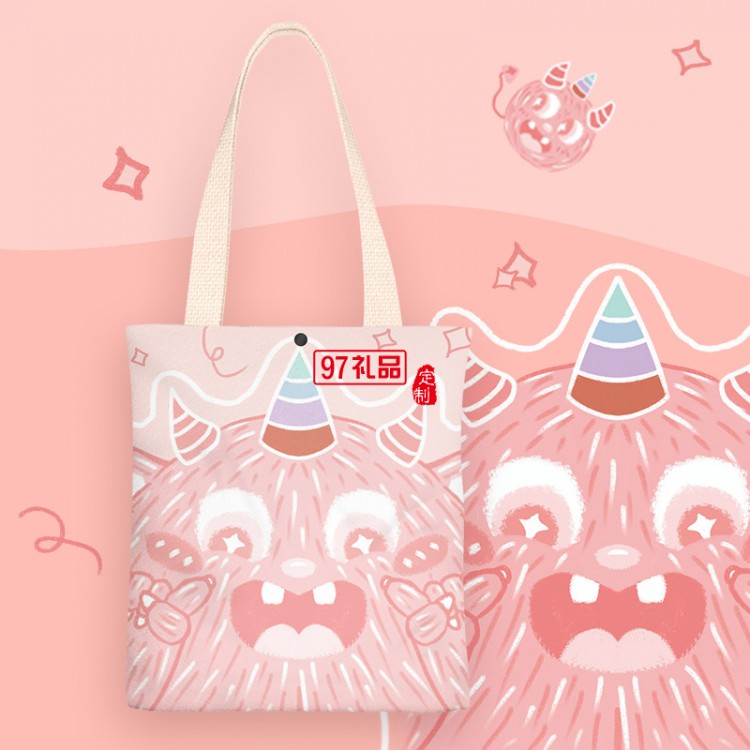 新款粉色小怪獸學(xué)生大容量單肩帆布手提袋購(gòu)物袋定制