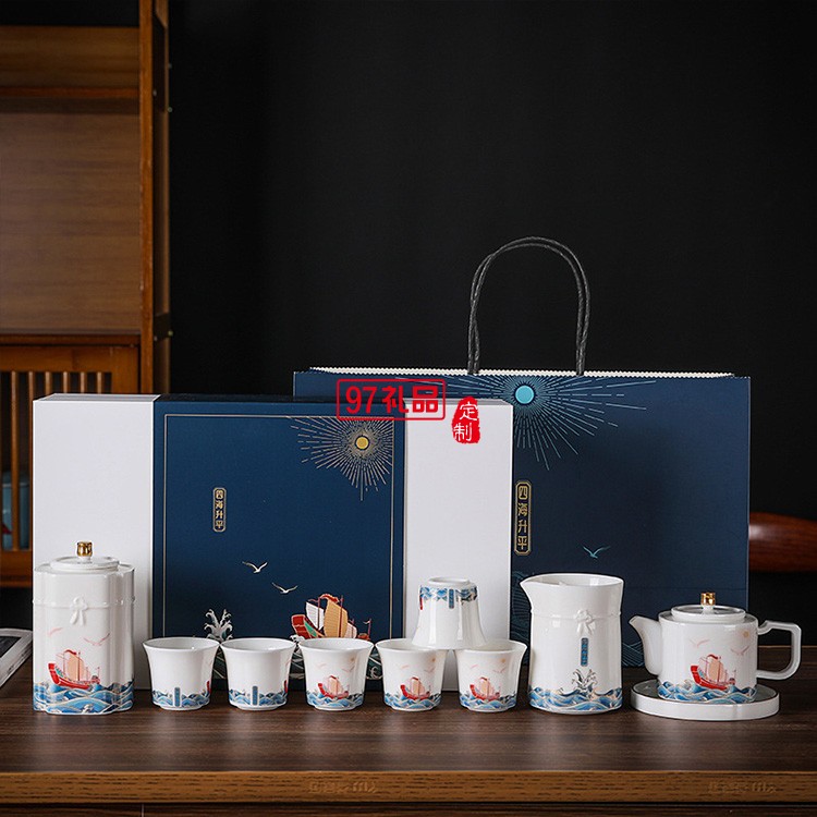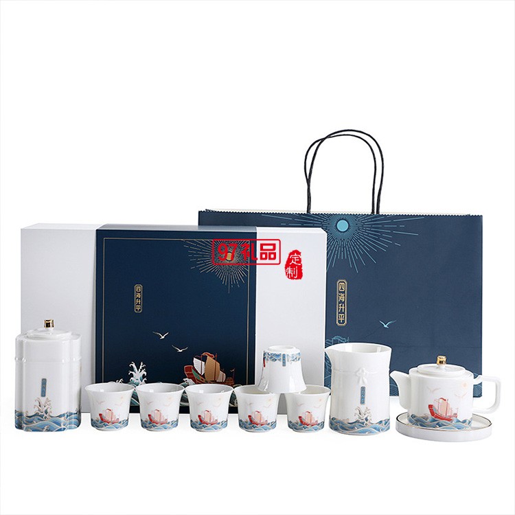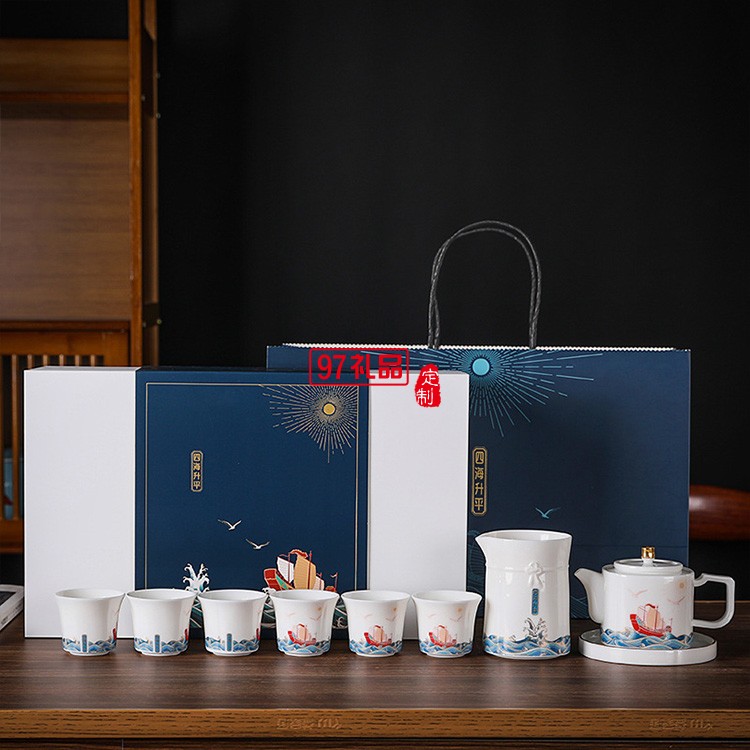 四海升平茶具套裝可印ogo商務禮盒開業(yè)伴手禮定制