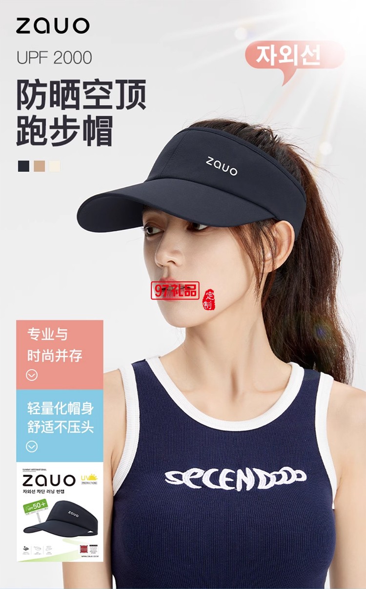 韓國zauo防曬空頂跑步帽女戶外運動防紫外線網(wǎng)球帽透氣春夏鴨舌帽