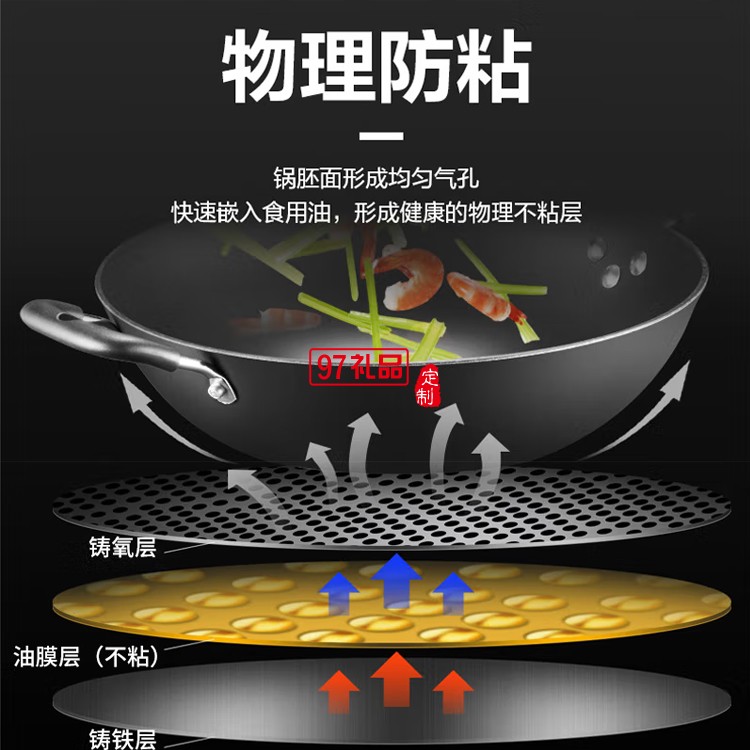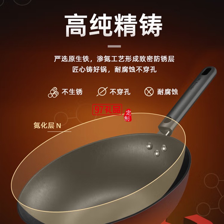 九陽炒鍋鑄鐵鍋炒菜鍋鐵鍋老式生鐵鍋CZH3207定制公司廣告禮品