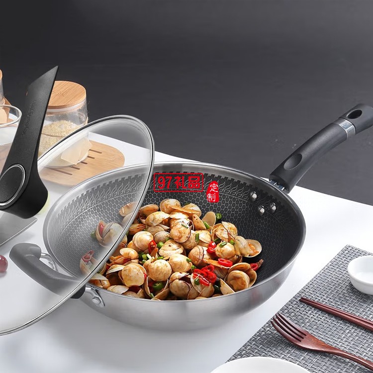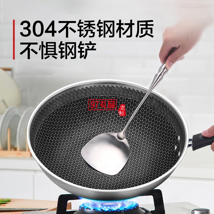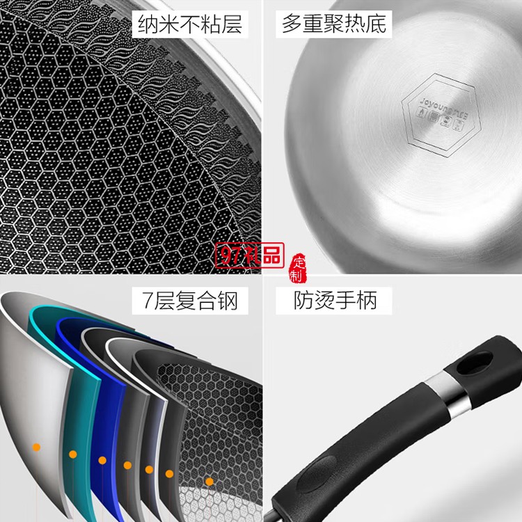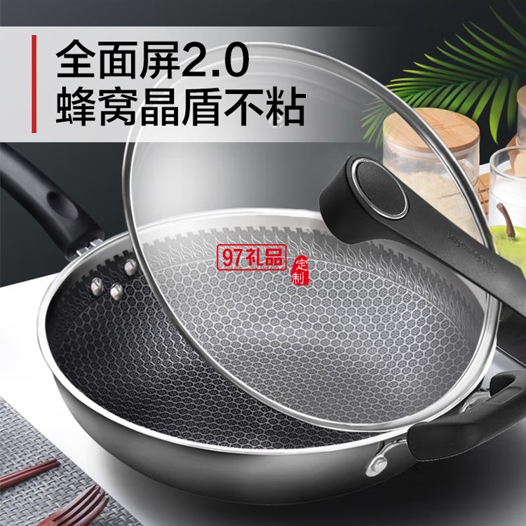 九陽蜂窩304不銹鋼炒鍋不粘平底炒菜鍋CGW3238定制公司廣告禮品