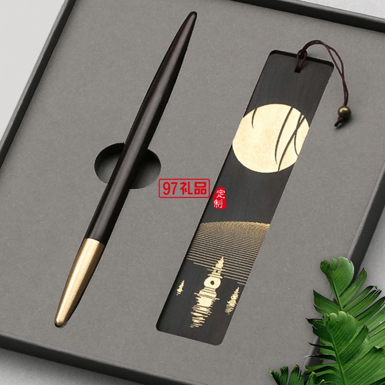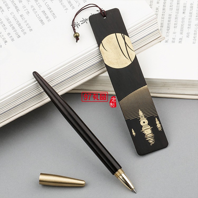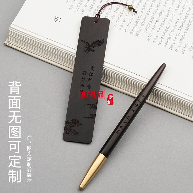 紅木質(zhì)鏤空雕刻古風(fēng)書簽簽字筆書簽套裝