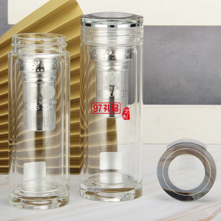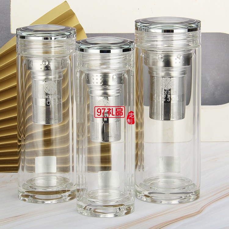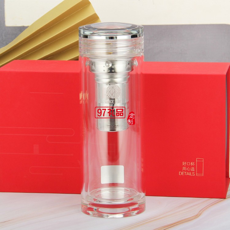 匡迪406號雙層水晶玻璃杯簡約商務辦公泡茶杯廣告禮品杯可定logo
