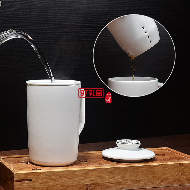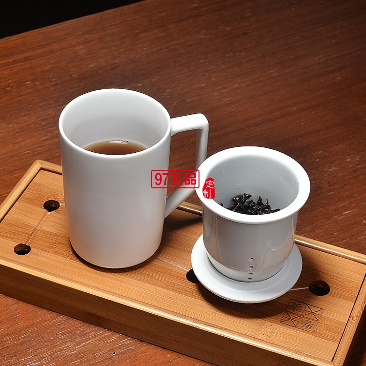 定窯陶瓷馬克杯過濾帶蓋陶瓷茶杯創(chuàng)意杯子