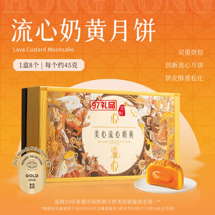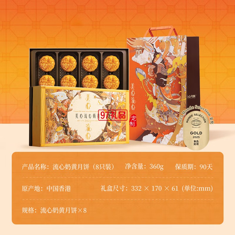 美心(Meixin)流心奶黃港式月餅禮盒360g 8枚裝