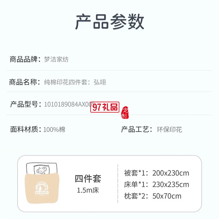 1、純棉印花,透氣性好,吸濕性強(qiáng),持久耐用 ;2、短枕飛邊工藝,簡(jiǎn)約大氣;3、常規(guī)的四件套組合,被面下方開口,可雙面使用:4、定點(diǎn)綁帶,牢牢鎖住被芯,防止被芯位移。
