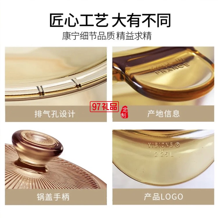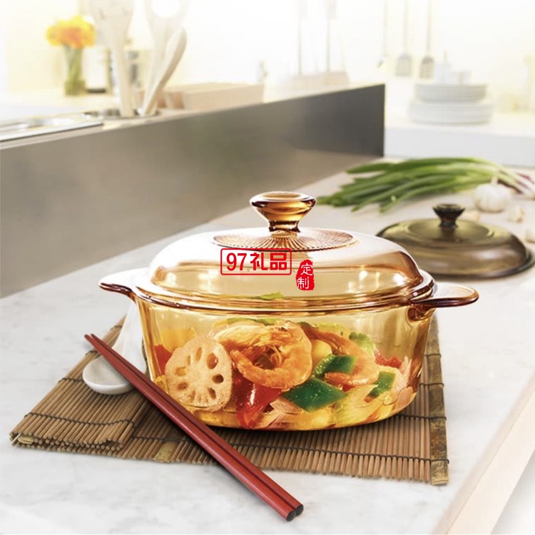 晶彩透明康寧鍋耐熱琥珀鍋1.25L單人輔食鍋定制公司廣告禮品
