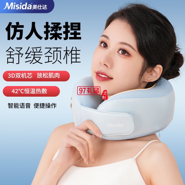 按摩儀3D仿人揉捏親膚萊卡面料新款智能語音多功能頸椎肩頸按摩枕枕頭脖子