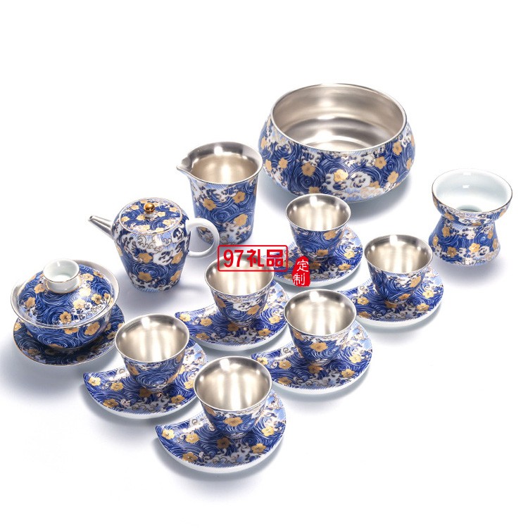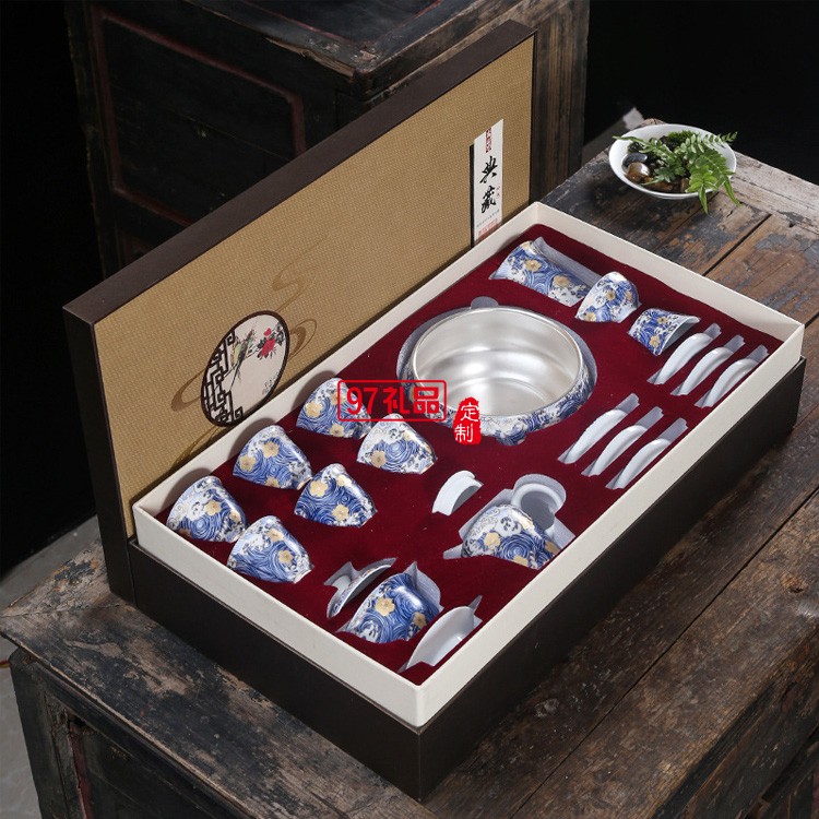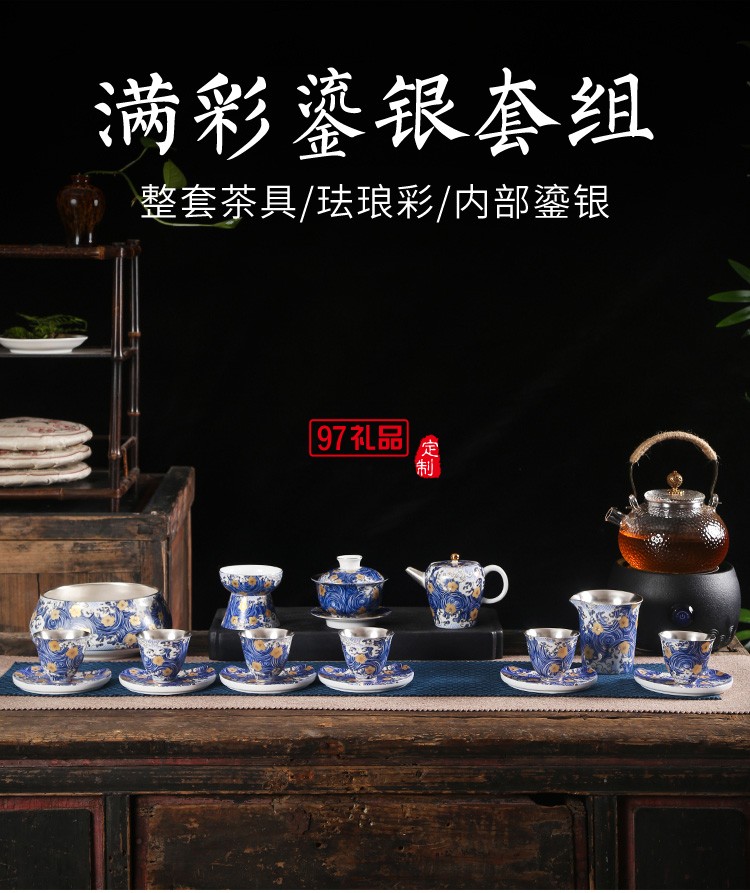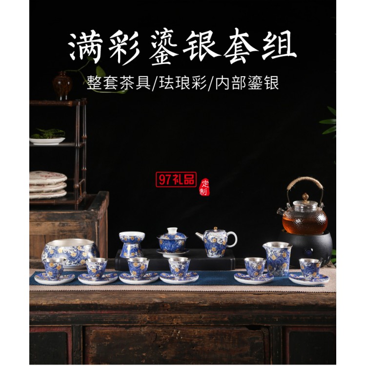 茶具陶瓷套裝純銀整套功夫茶杯泡茶家用茶壺蓋碗高檔商務(wù)禮品定制