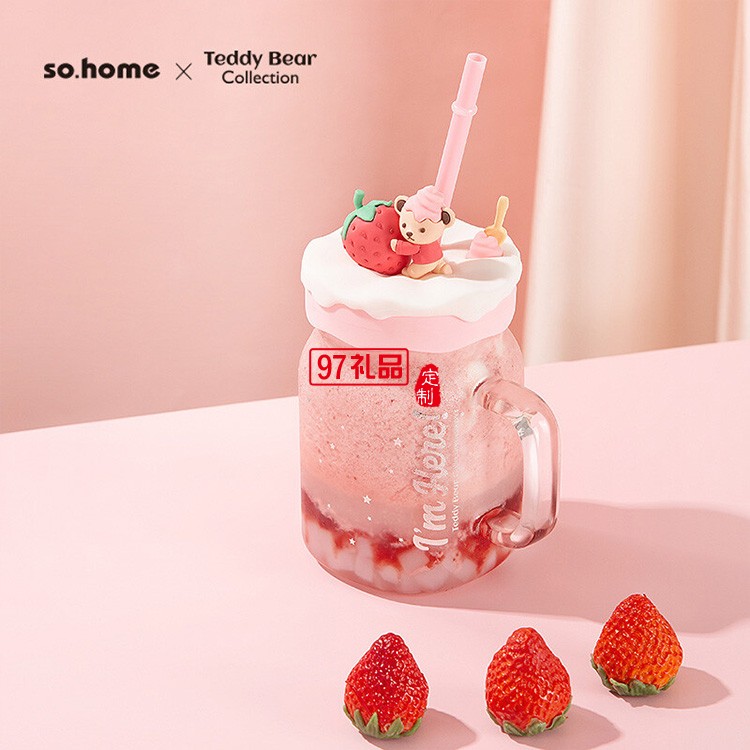 卡通可愛吸管杯草莓玻璃杯少女風(fēng)ins玻璃杯吸管杯禮品杯子定制