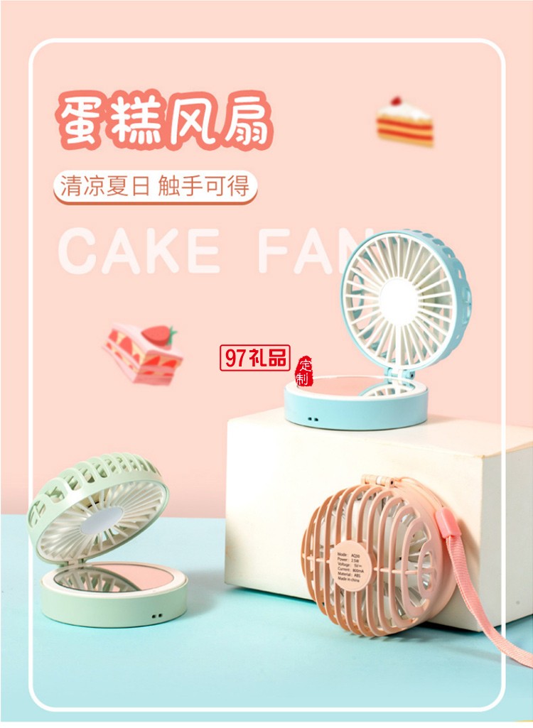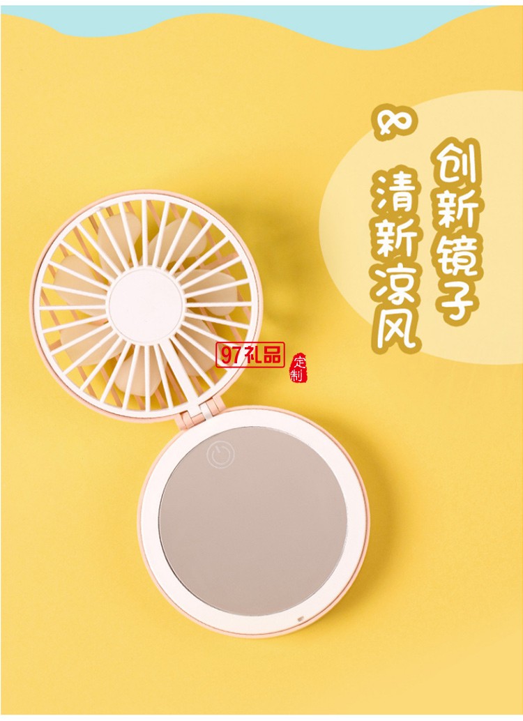 迷你折疊化妝鏡掛繩隨身便攜充電風(fēng)扇