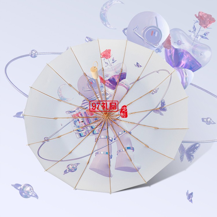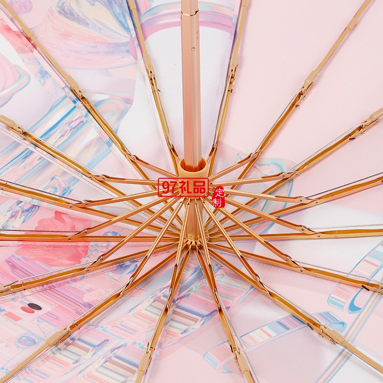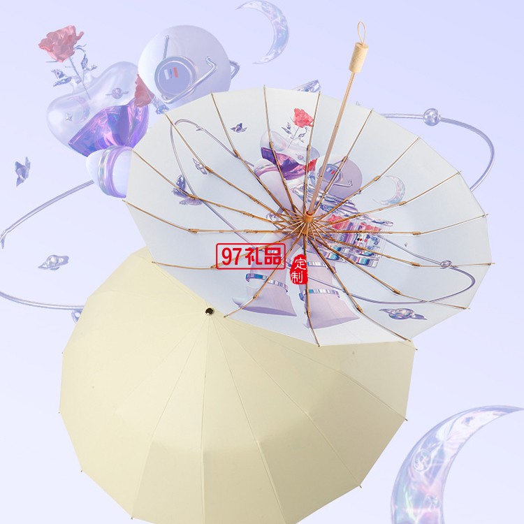 女神節(jié)三八送禮新款三折16骨手開(kāi)彩膠晴雨傘實(shí)木手柄遮陽(yáng)傘