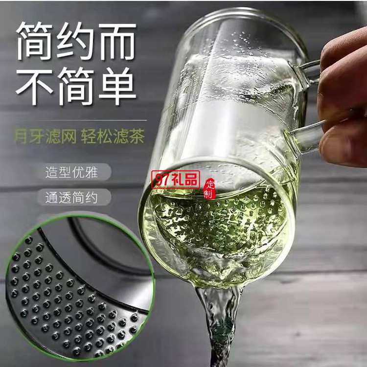 高鵬硅玻璃過(guò)濾泡茶杯加厚底月牙杯禮品杯子定制