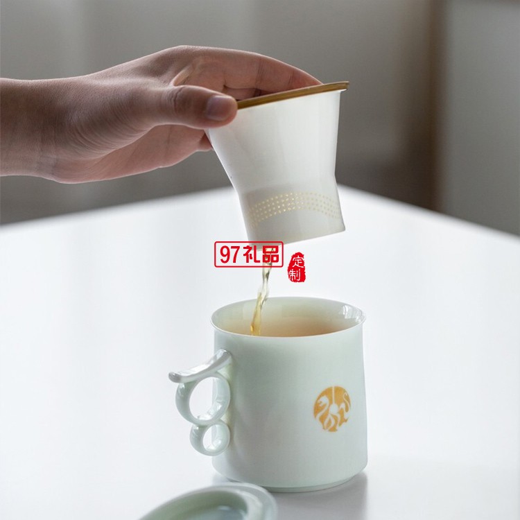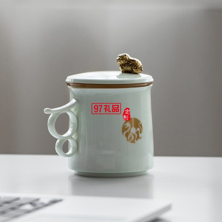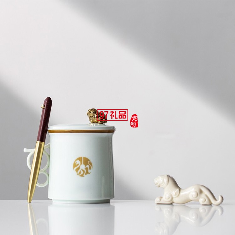 合生福氣辦公杯馬克杯桐木筆可拆分虎符香插新年禮盒套裝