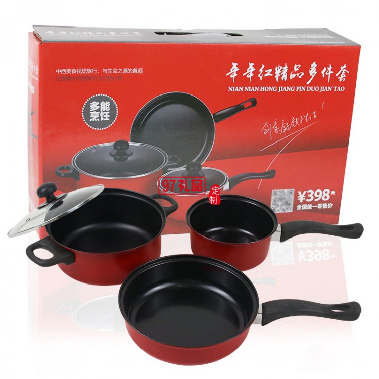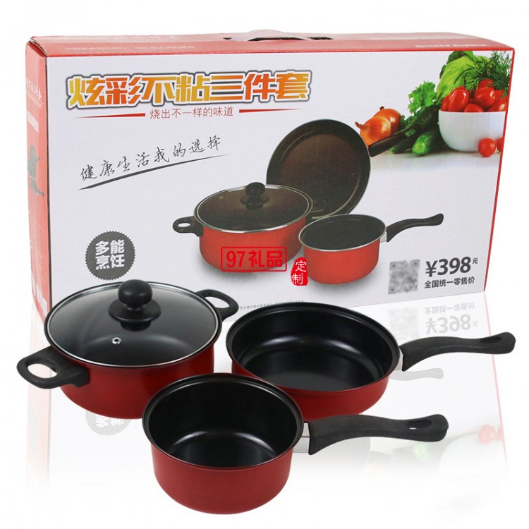 企業(yè)年會禮品獎品贈送品炒鍋煎鍋奶鍋 廚房鍋具組合 禮品三件套鍋