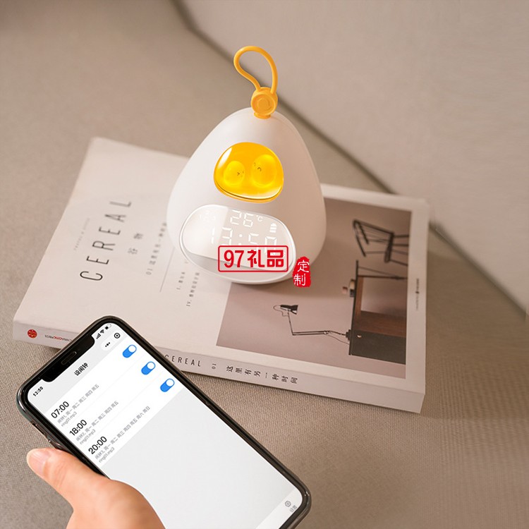 usb充電床頭led小夜燈小程序兒童鬧鐘鳥巢時光鬧鐘