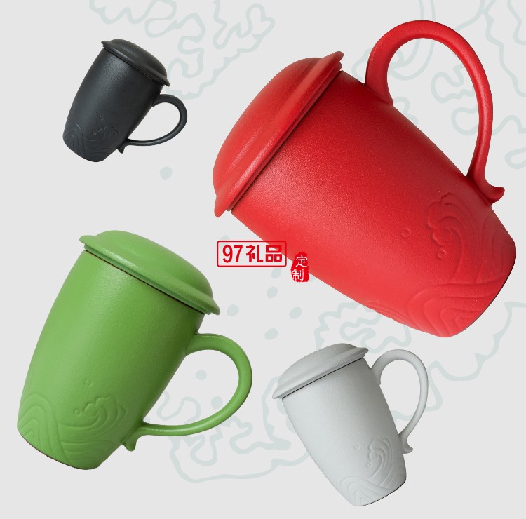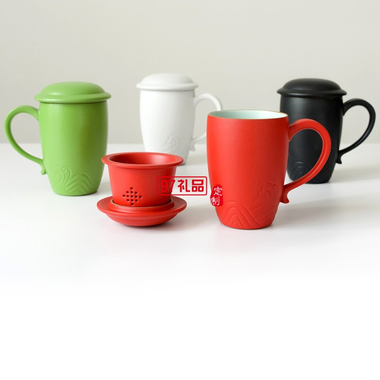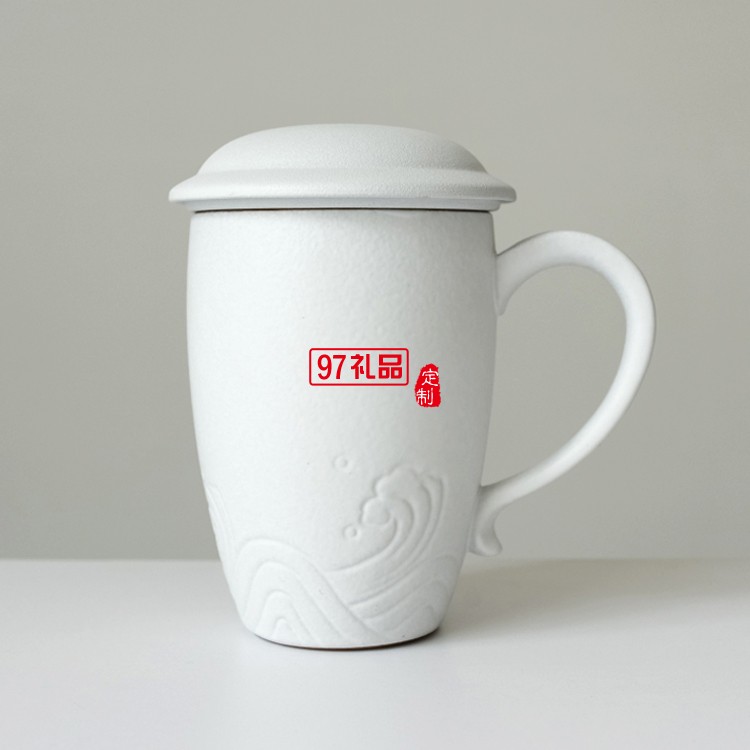小皿馬克杯陶瓷帶蓋帶過濾網(wǎng)定制logo實用禮品禮品杯子定制