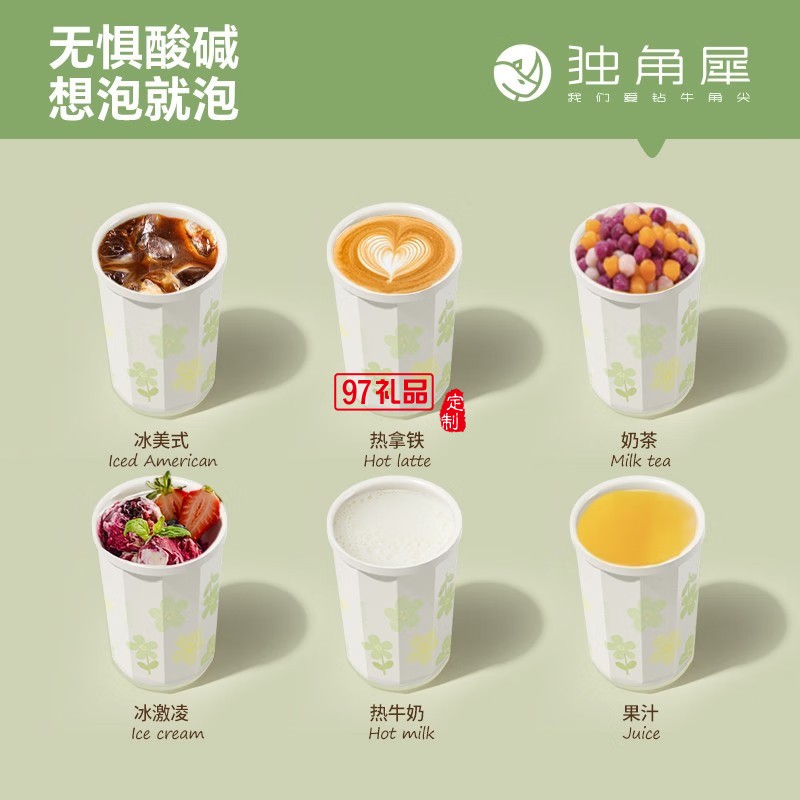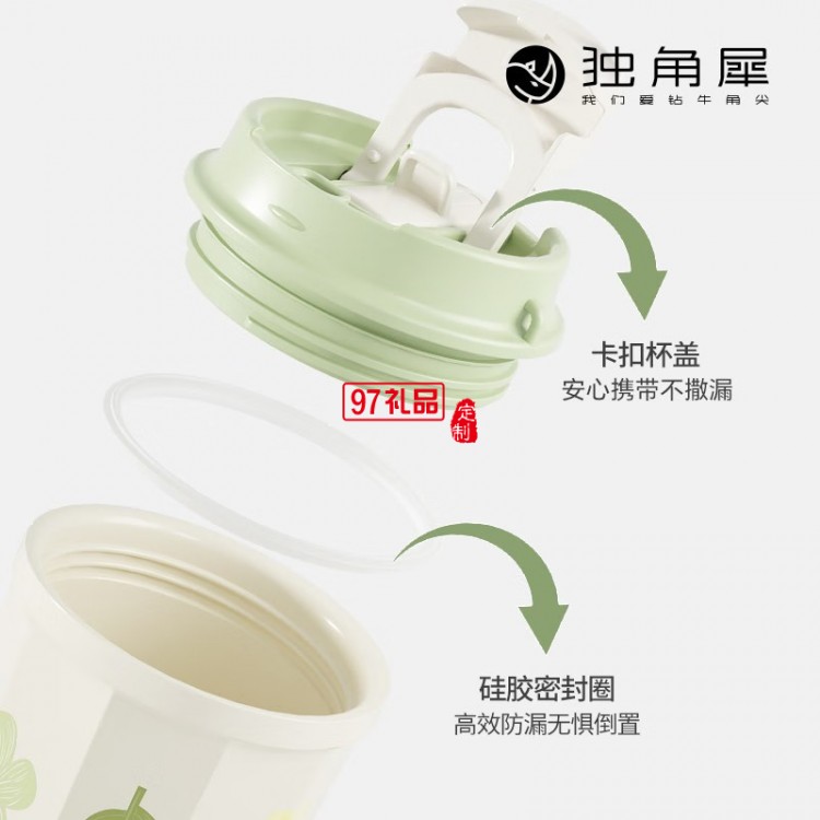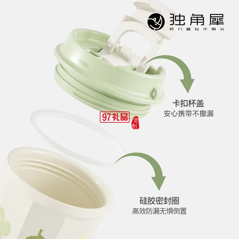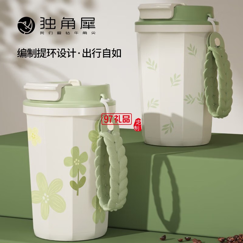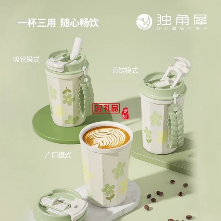 獨(dú)角犀雙飲口陶瓷內(nèi)膽咖啡杯 春綠海棠