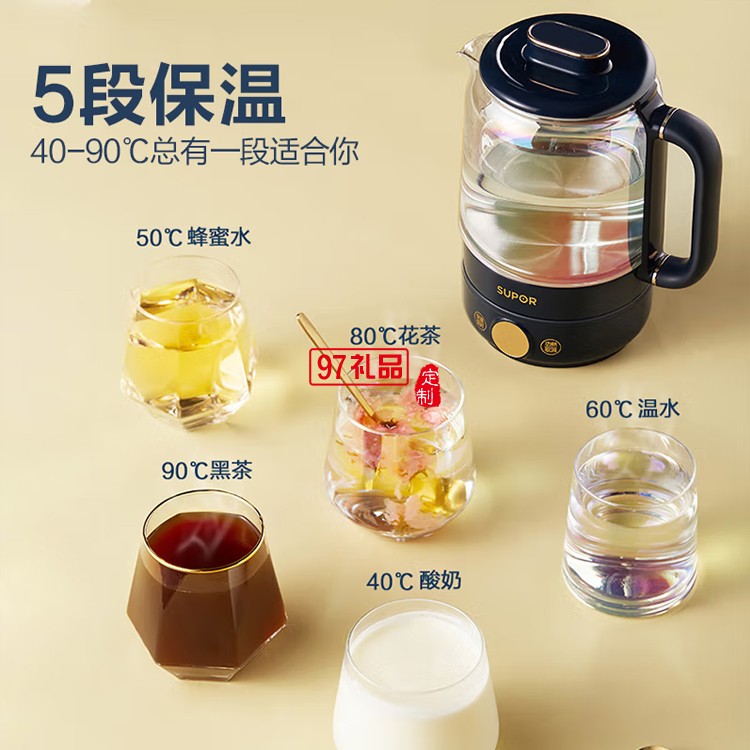 蘇泊爾養(yǎng)生壺保溫養(yǎng)生杯辦公室燒水壺玻璃SW-08Y02定制公司廣告禮品