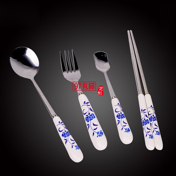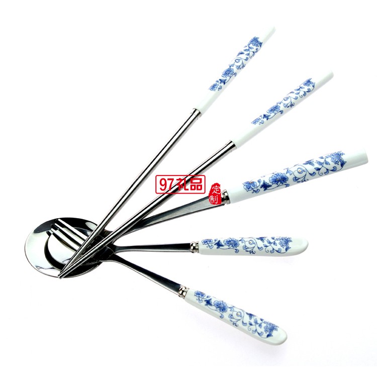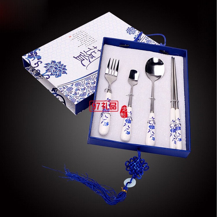 青花瓷是中國特有的,是我們中國文化的特寫。是中國瓷器的主流品種之一,屬釉下彩瓷??梢运徒o外國朋友,讓他們了解中國文化。可以送給客戶,朋友,家人。 本套產(chǎn)品五金部分是高檔鏡面光,亮的可以當鏡子使用??曜蛹忸^采用防滑設計,十分人性化,實用方便。 整套尺寸:25*18.2*3.6 叉子:17*2.4 筷子:22 勺子:19.9*4 雪糕勺:15.7*1.9 裝箱數(shù)量:40套 裝箱規(guī)格:50*36.5*36cm
