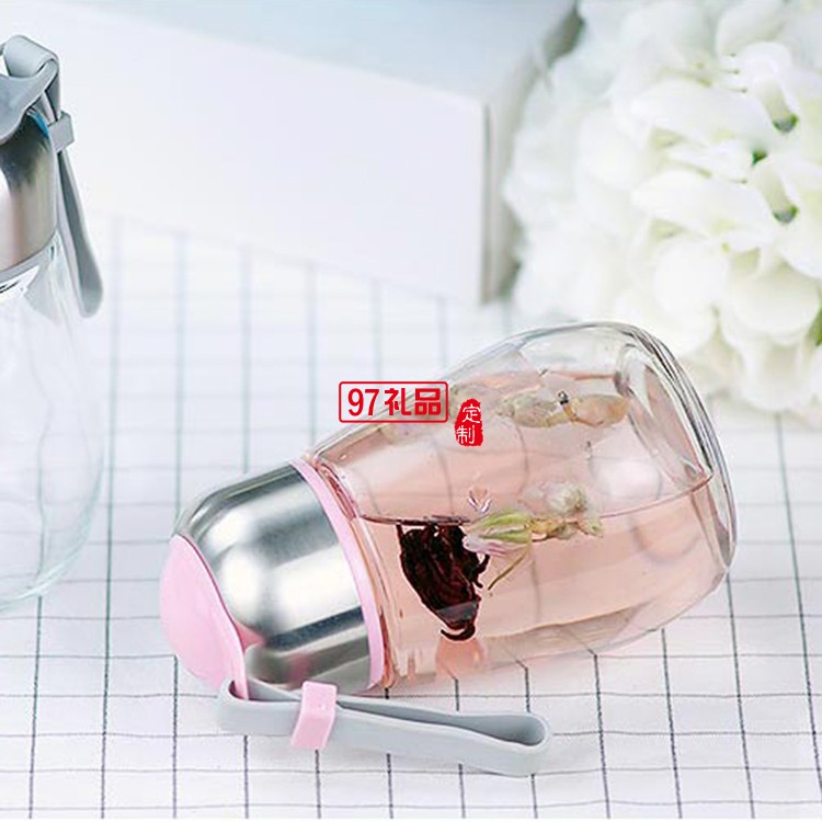 創(chuàng)意企鵝杯玻璃杯禮品定制廣告促銷杯子花茶隨手杯定制LOGO