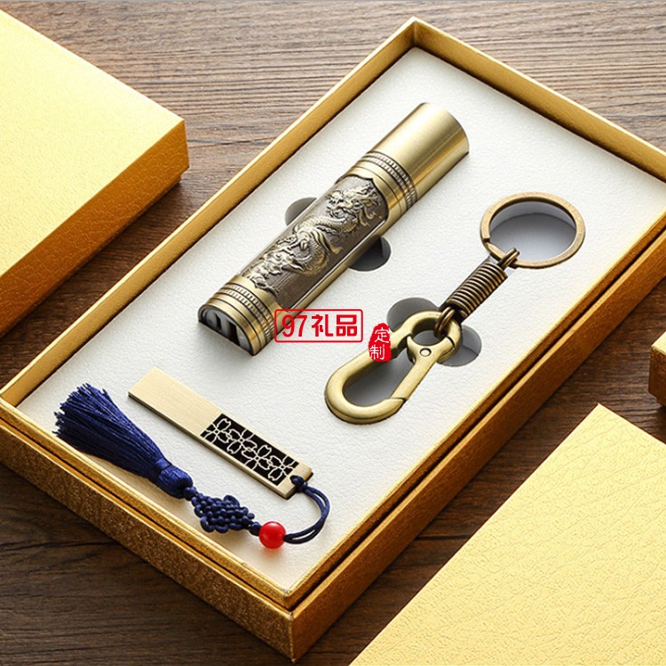 8Gu盤定制logo 青銅如意U盤 手電筒套裝企業(yè)周年定制