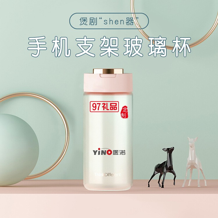 玻璃杯可愛男女手機支架韓版ins學(xué)生便攜卡通禮品杯子定制
