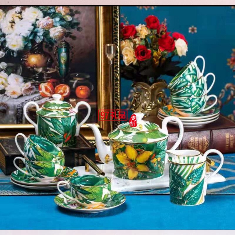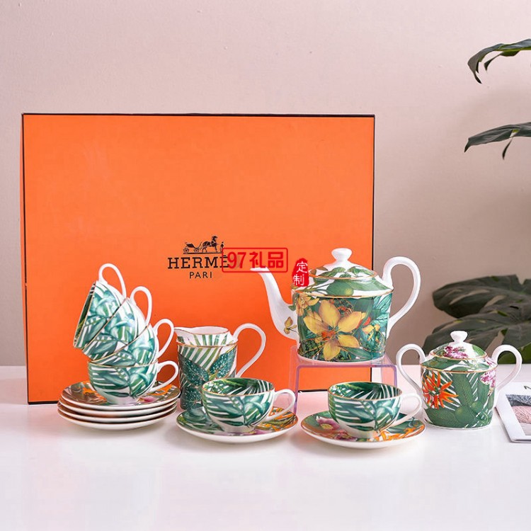 HERME愛馬歐式熱帶雨林系列15頭骨瓷餐具陶瓷盤碗勺喬遷結婚禮品
