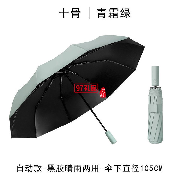 新款12骨黑膠全自動雨傘折疊商務(wù)晴雨傘三折遮陽防嗮太陽傘廣告