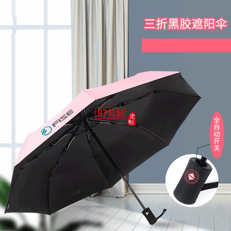 晴雨傘兩用自動三折黑膠遮陽傘定制戶外防紫外線折疊太陽防曬傘
