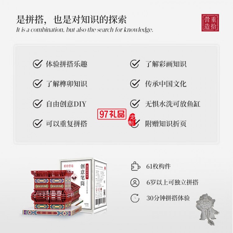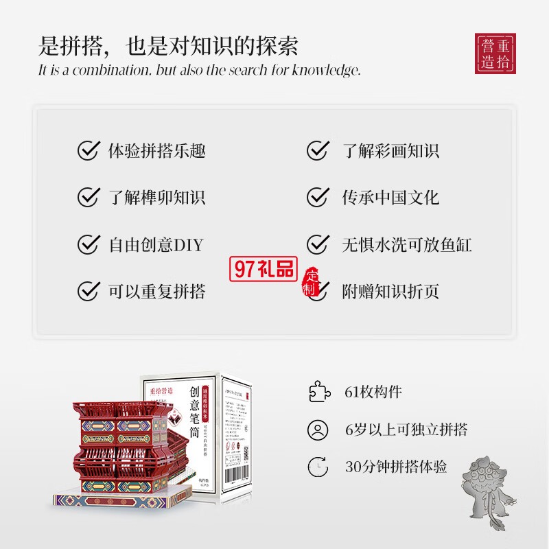 榫卯國風筆筒桌面女生化妝刷收納辦公筆插禮物積木