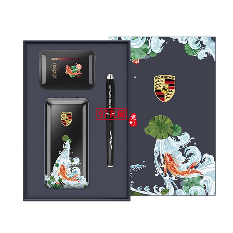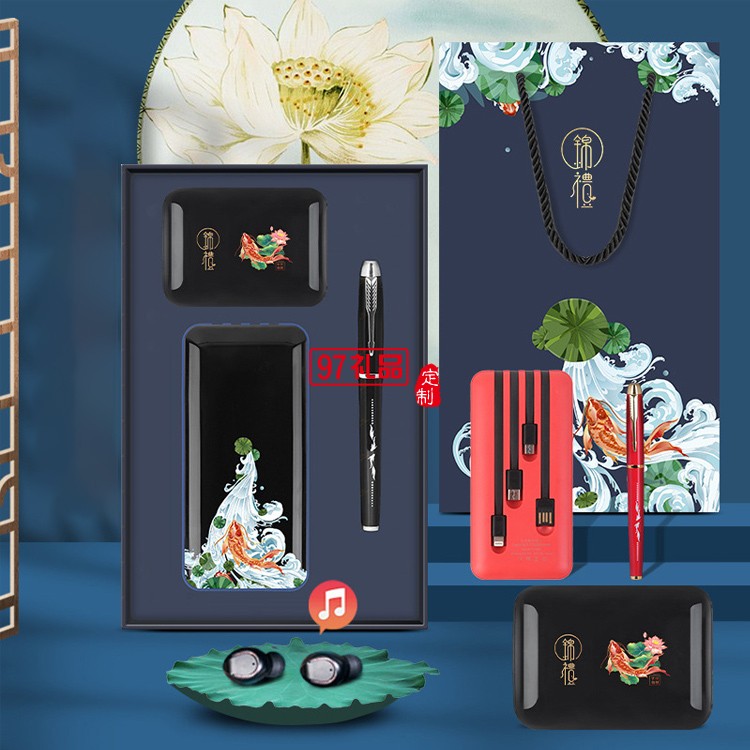 錦鯉移動(dòng)電源藍(lán)牙耳機(jī)簽字筆商務(wù)套裝
