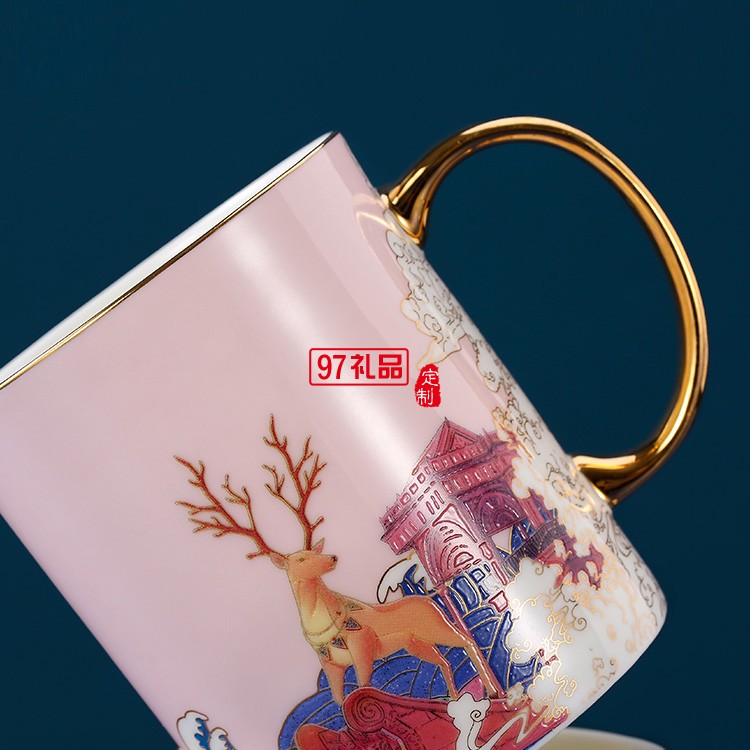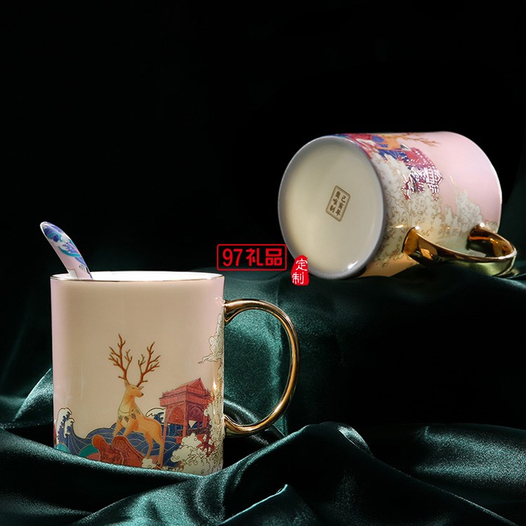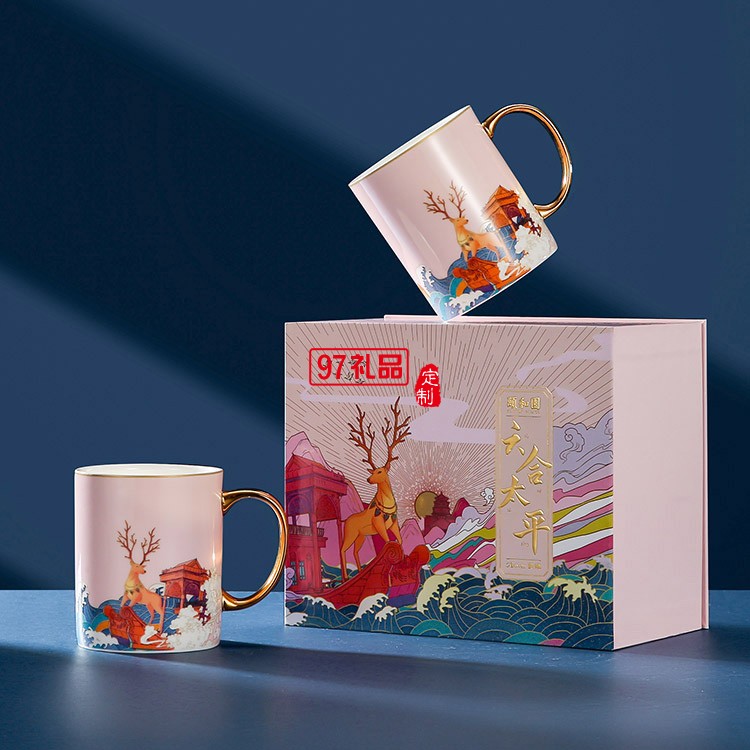 頤和園陶瓷馬克杯情侶杯子一對創(chuàng)意骨瓷喝水杯結(jié)婚生日禮盒裝