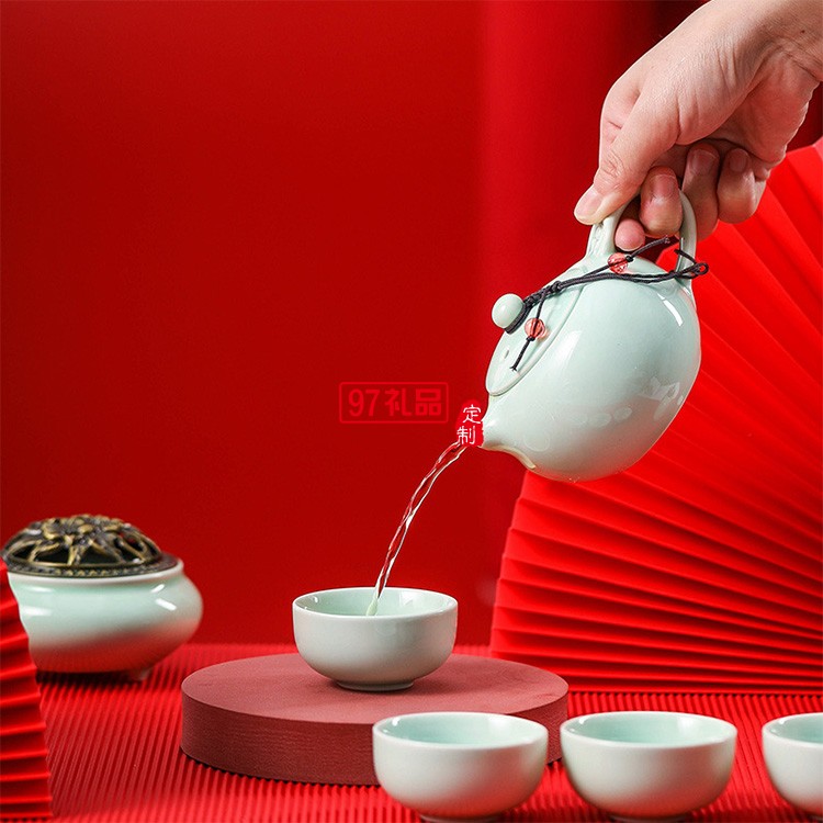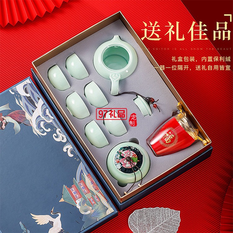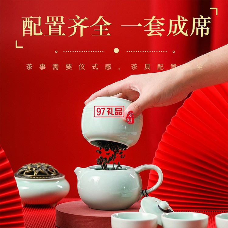 整套陶瓷功夫茶具套裝帶茶葉罐蓋碗茶杯茶壺制定logo商務禮品