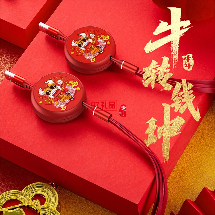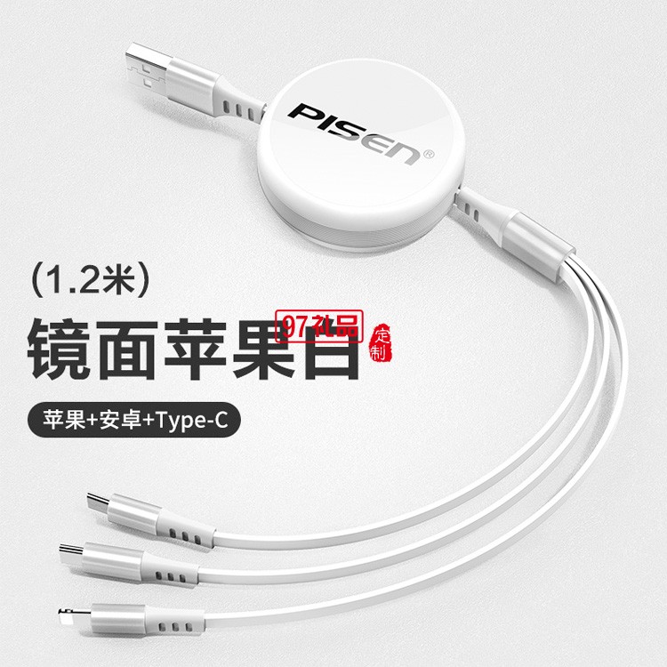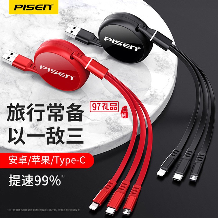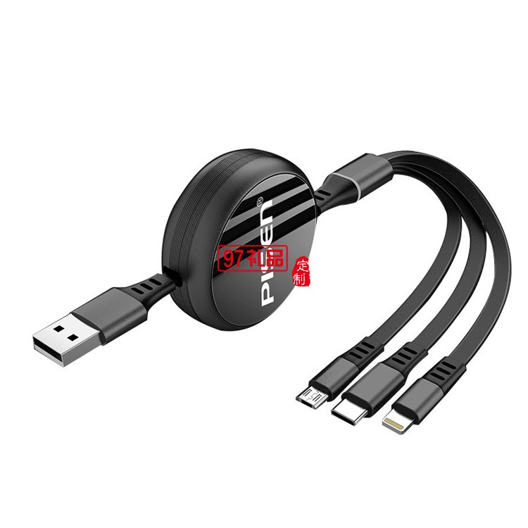 品勝一拖三數(shù)據(jù)線三合一3A快充線適用蘋果華為伸縮數(shù)據(jù)線禮品定制