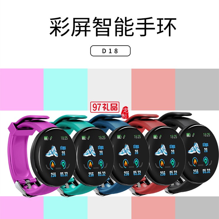 智能手環(huán)彩屏D18S心率血壓監(jiān)測1.44寸圓屏健康運動計步器