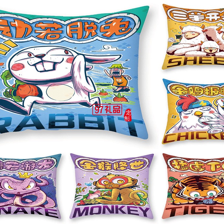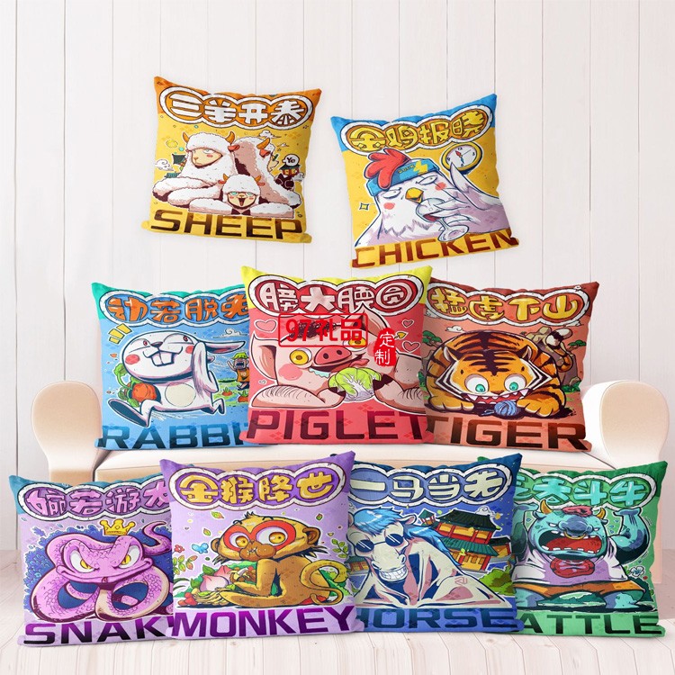 新款卡通十二生肖抱枕套國潮創(chuàng)意靠枕喜慶新中式毛絨抱枕