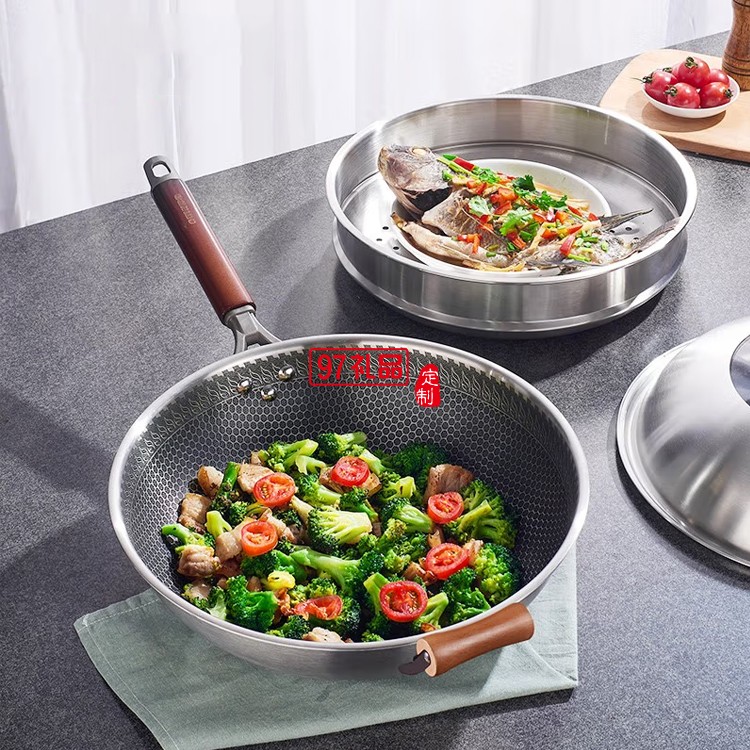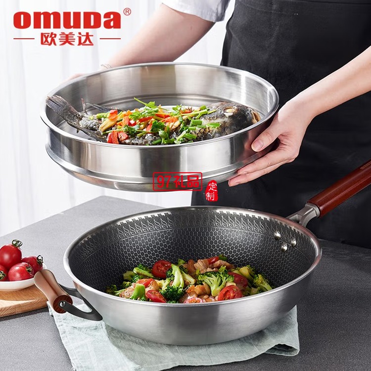 歐美達不銹鋼炒鍋燃氣灶適用電磁爐炒菜鍋 32cm定制公司廣告禮品