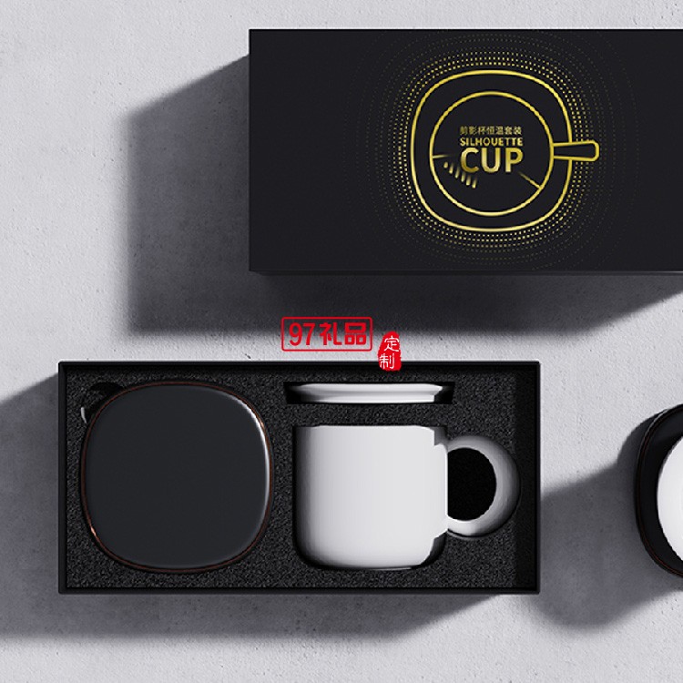 55度恒溫杯加熱杯子創(chuàng)意水杯陶瓷馬克杯帶蓋