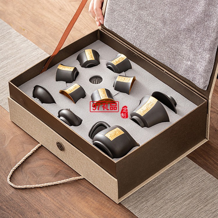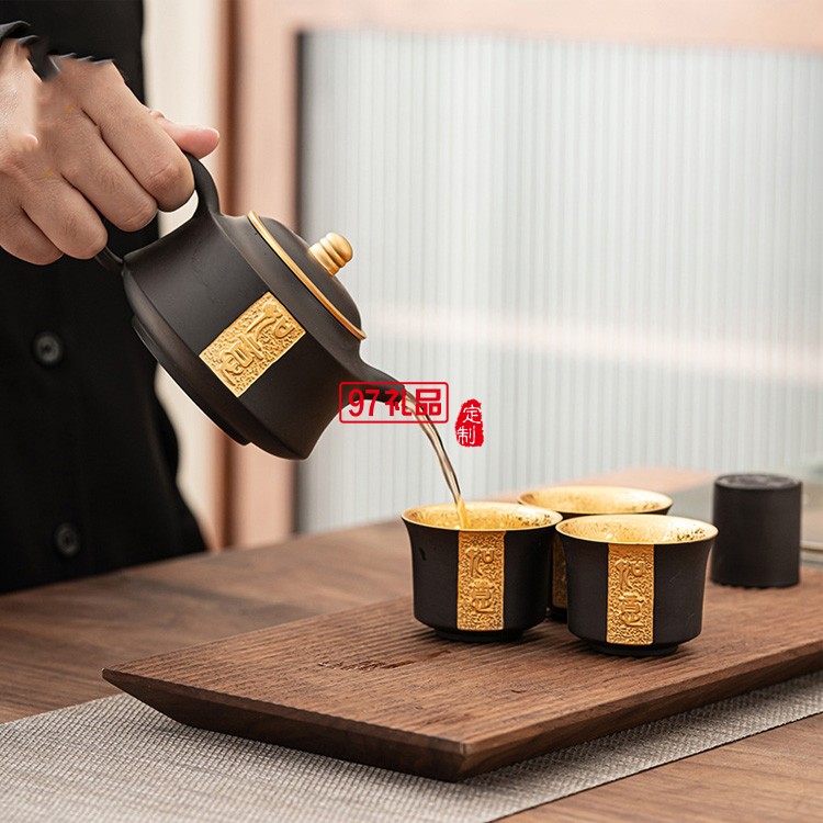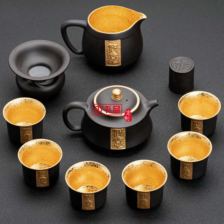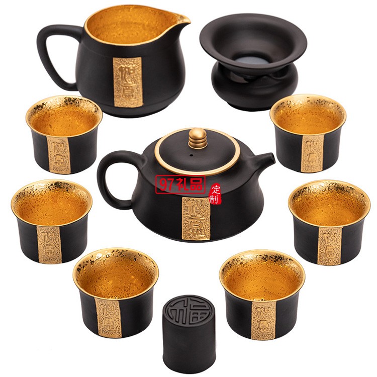 如意紫砂鎏金茶具套裝整套功夫茶具套裝紫砂茶壺蓋碗套組
