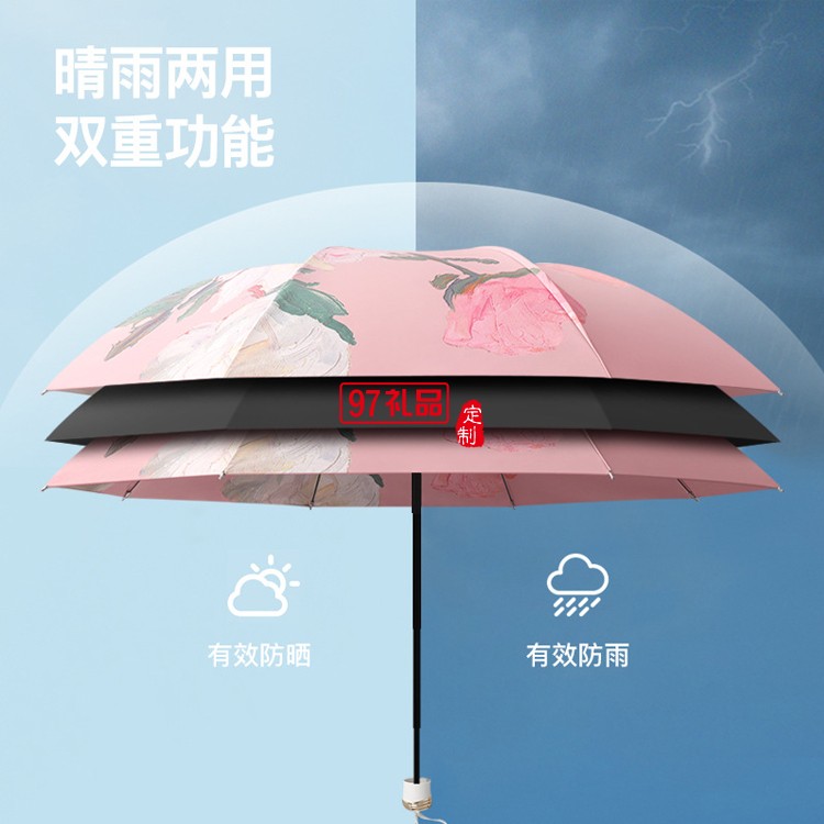 女神節(jié)專(zhuān)屬小紅書(shū)爆款8骨三折手開(kāi)黑膠雙層傘遮陽(yáng)傘手開(kāi)晴雨傘