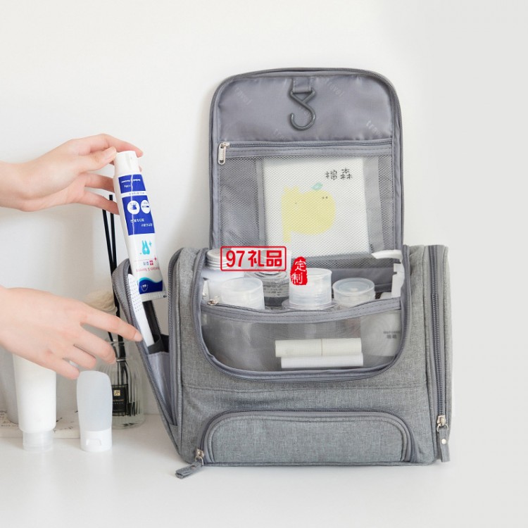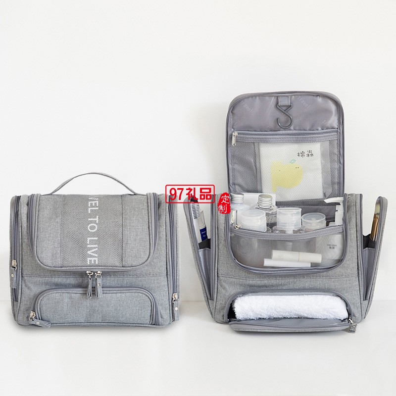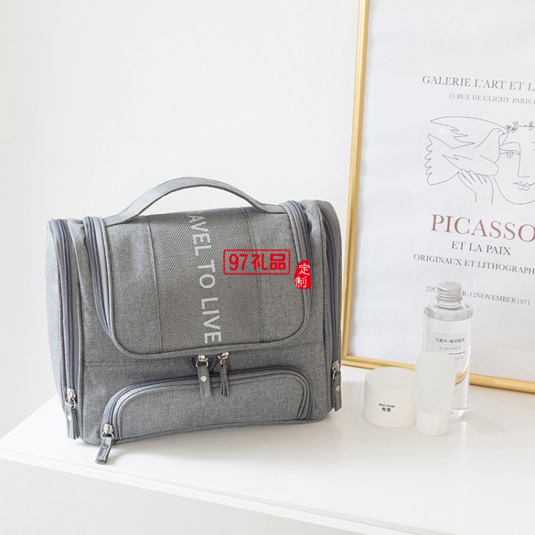 雙耳朵三拉鏈干濕分離洗漱包定制公司廣告禮品