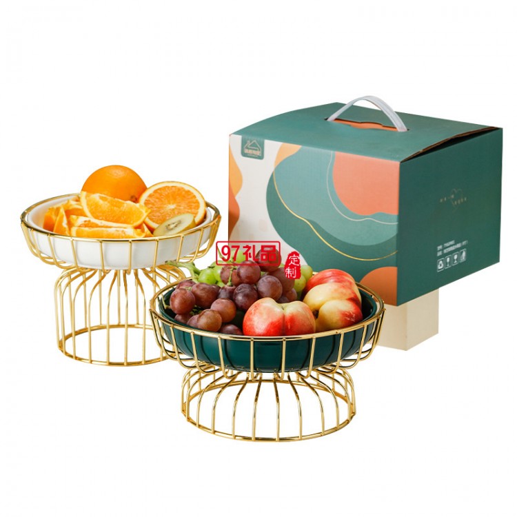 ins水果盤(pán)鐵藝架+陶瓷甜品盤(pán)糖果盤(pán)網(wǎng)紅高腳果盤(pán)禮盒套裝伴手禮