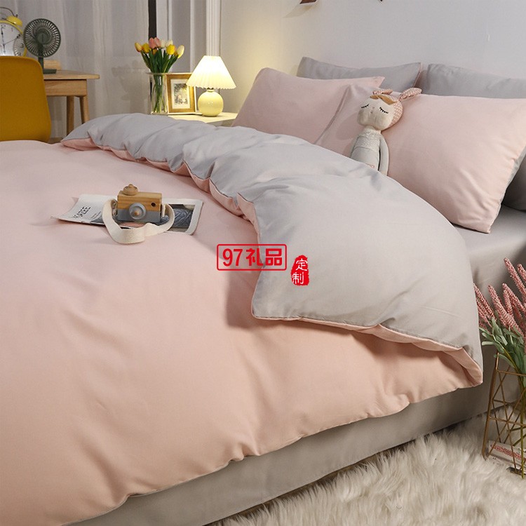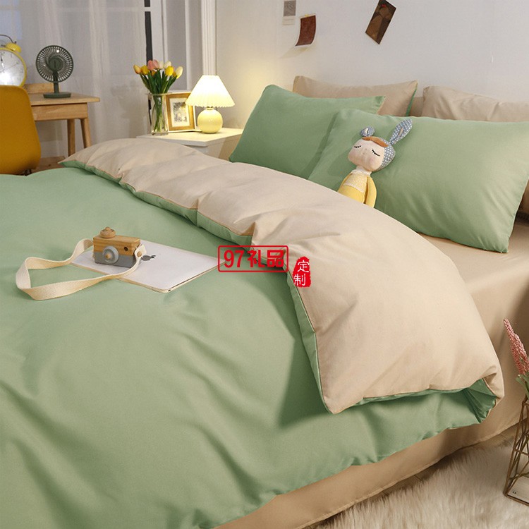 水洗棉四件套日系純色床單被罩4件套 簡(jiǎn)約被套宿舍床上用品三件套