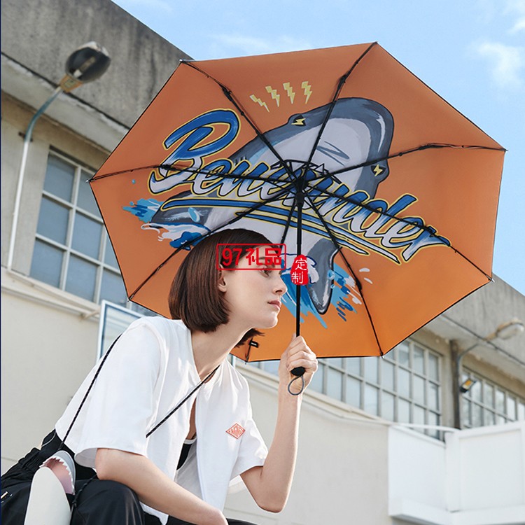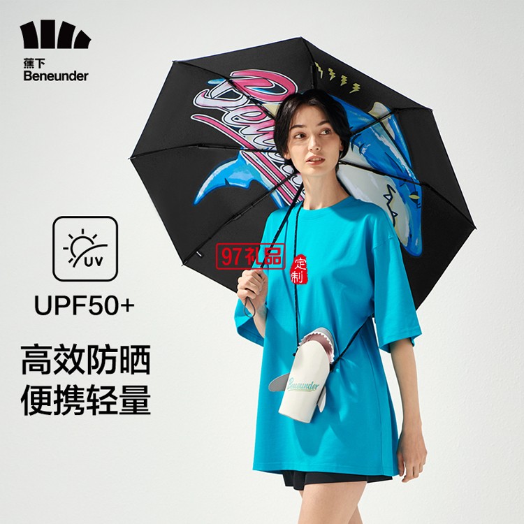 國(guó)潮鯊氏比太陽(yáng)傘女黑膠遮陽(yáng)防曬晴雨兩用超輕鯊魚包傘定制公司廣告禮品