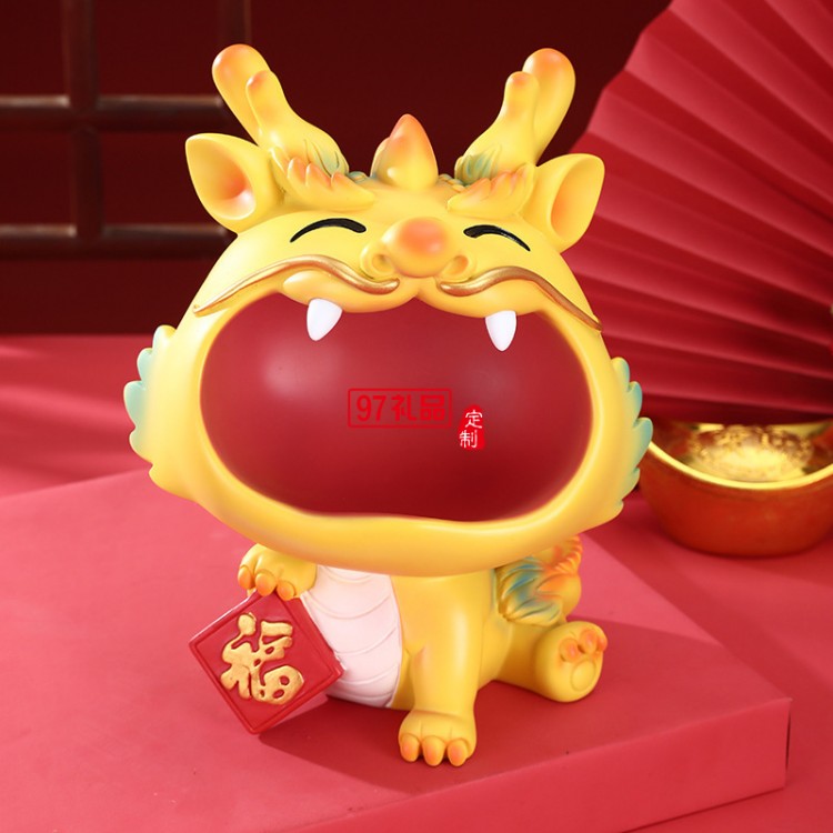 新年創(chuàng)意生肖龍擺件桌面玄關(guān)收納托盤春節(jié)招財(cái)吉祥物禮品家居裝飾