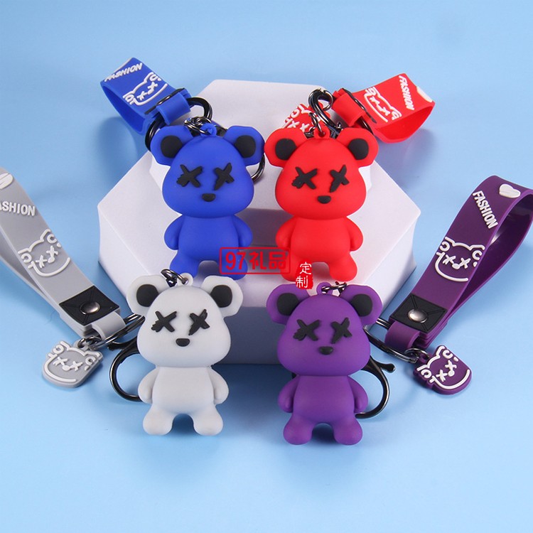 小熊PVC鑰匙扣掛件情侶芝麻街鑰匙包掛飾