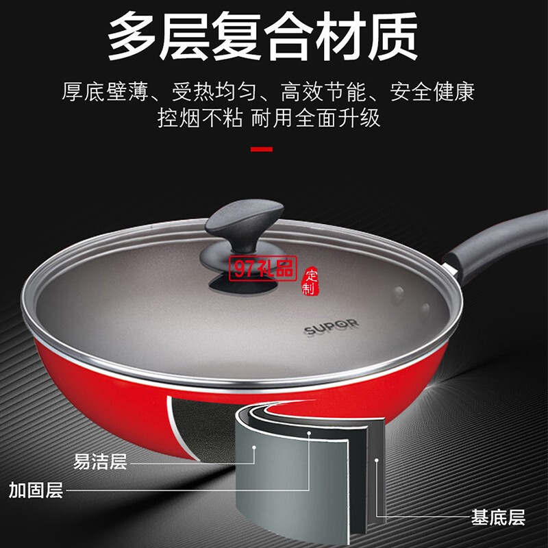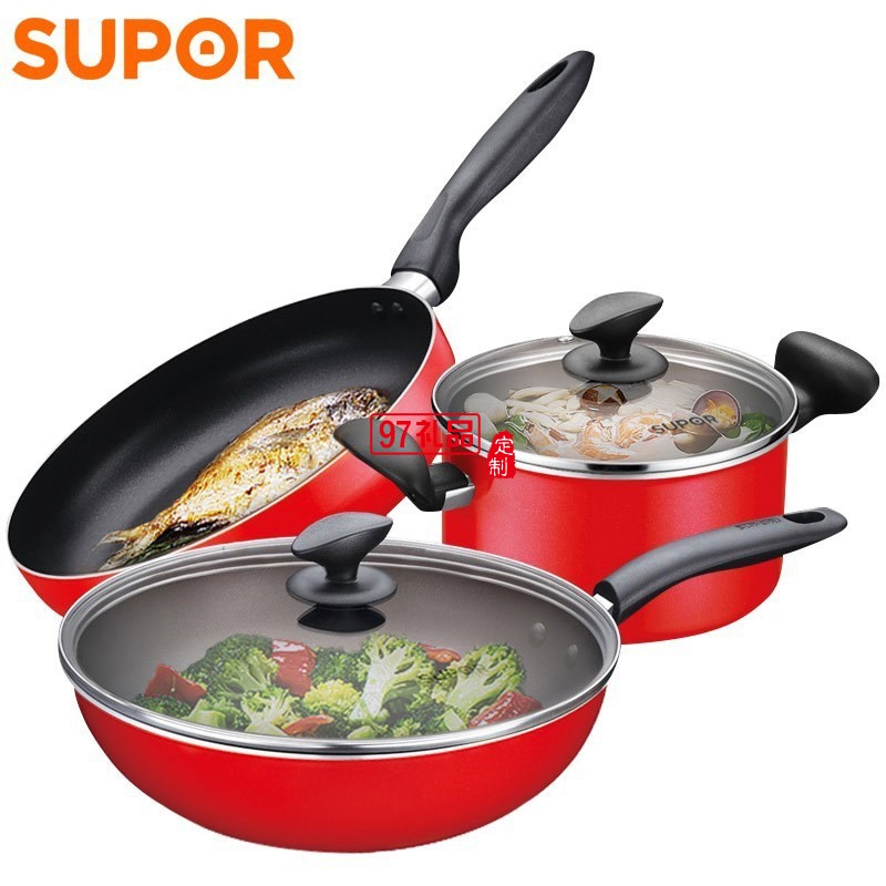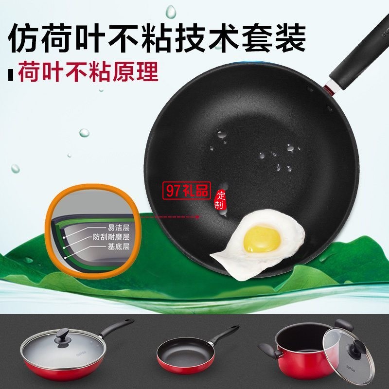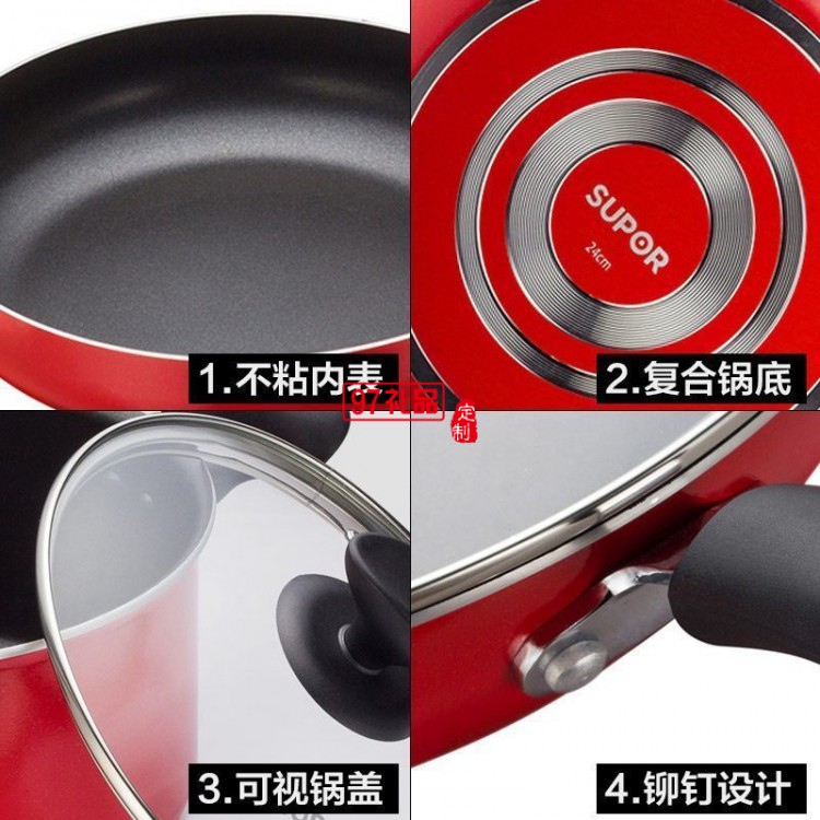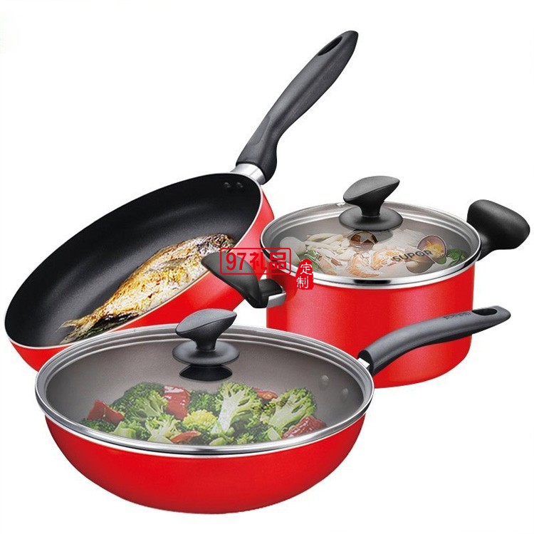 蘇泊爾不粘鍋三件套煎鍋平底鍋湯鍋套裝鍋送客戶禮品員工福利定制